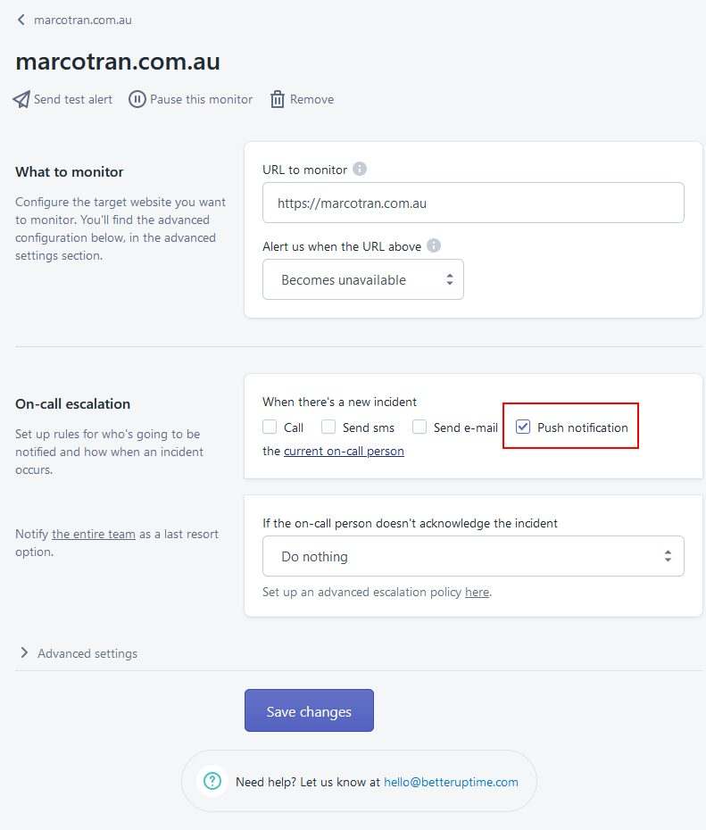 Better Uptime now have a mobile app and I’ve started using this method of receiving notifications instead of emails. I get an instant notification on my mobile phone when a device goes down or is restored