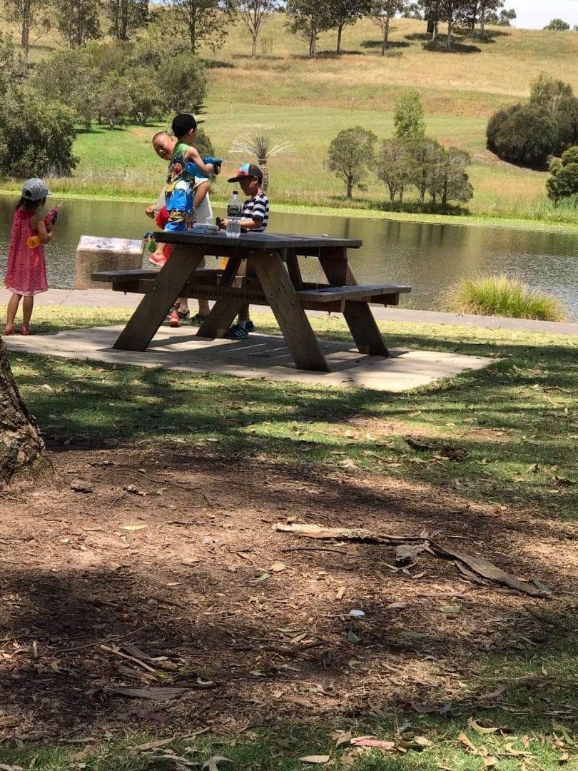 A hot day but some members of the Tran Clan family went to have a picnic at Mt Annan (Bowden Centre). There’s a nice lake there with tables and plenty of shade. The kids had fun riding on their bikes and having a water gun fight. I was outnumbered 1-4 but that didn’t stop me from getting them all wet. All the grandkids even sprayed their “a kong” (not sure how you spell it but it’s grandpa). It was a good start to the year having a picnic by spending time with the family. I was even amazed to see my mum riding a bike – she did sort of fall when she got on it but probably because of the uneven grass.