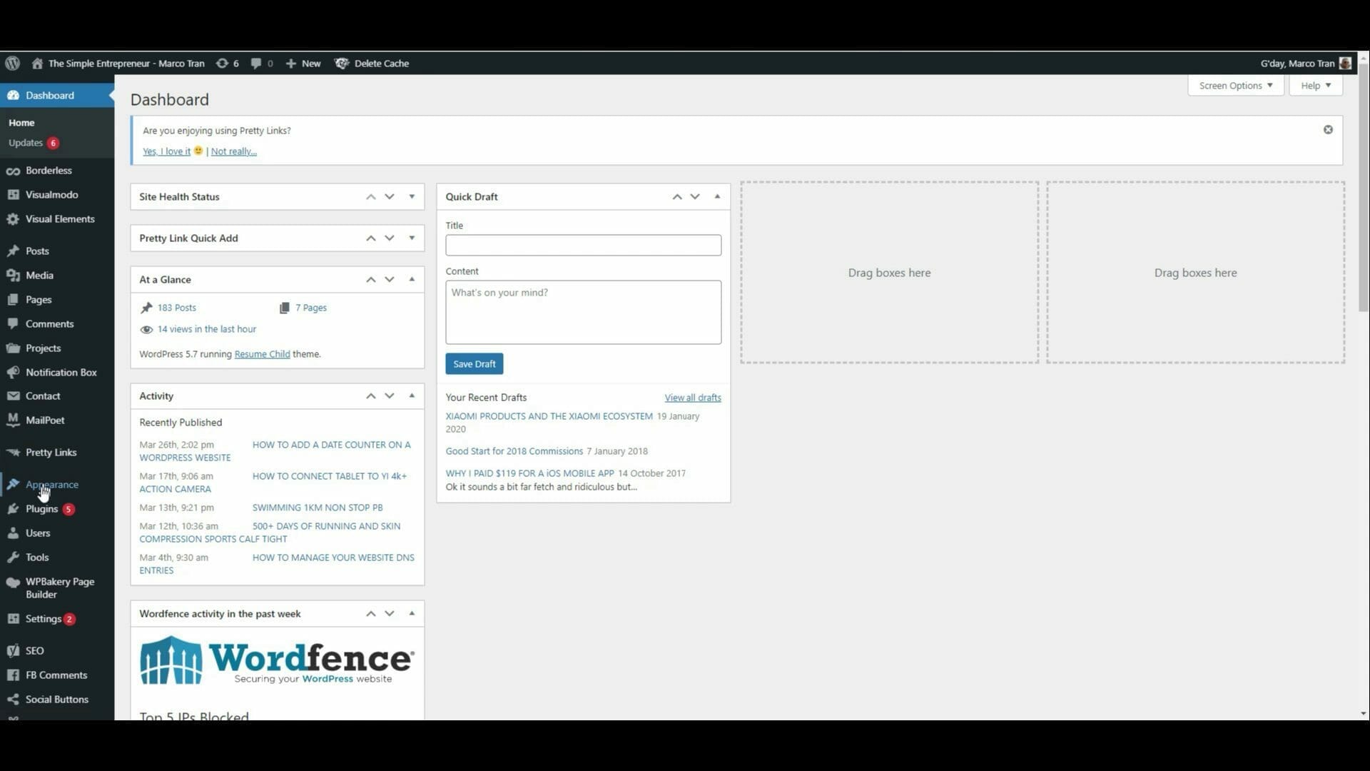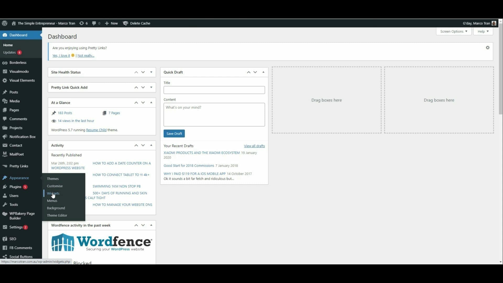 - Click on Appearance then click on Widgets (I add mine to the sidebar)