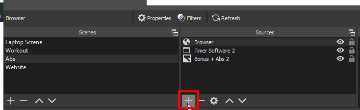 - Click on the + sign in the Sources Area