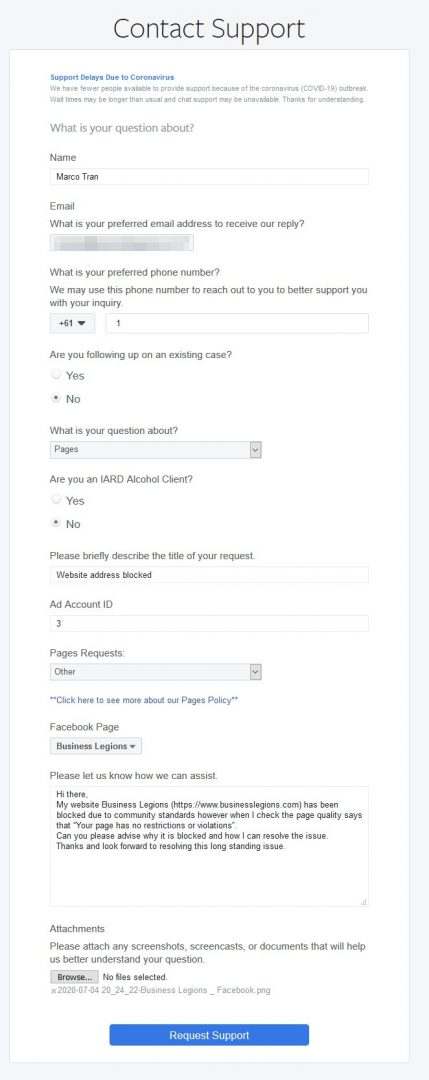 I sort of gave up in late February 2020 and decided to just focus on writing and sharing content on this website. It wasn’t until this week, after receiving many thank you messages and donations from the article HOW TO FIX FACEBOOK TOO MANY REDIRECTS that gave me some motivation and inspiration to find a way to unblock the website. I also had an idea to maybe outreach and contact someone from Facebook (upper management) directly.