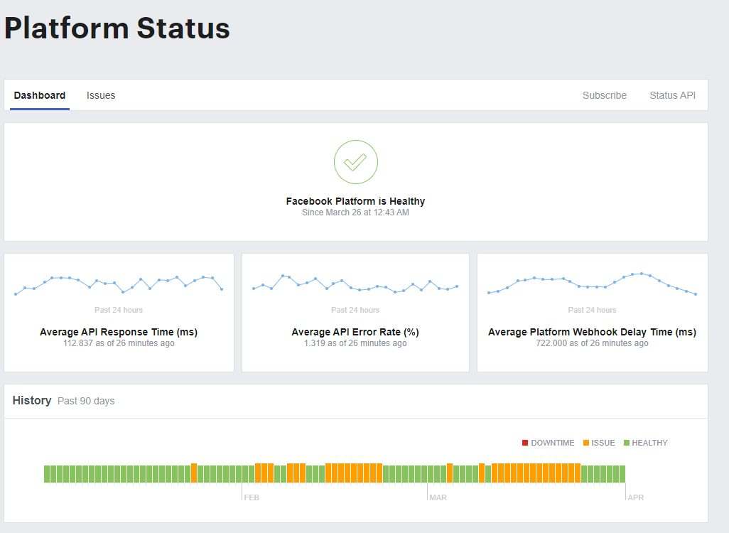 I checked the Facebook Developer status page and nothing appears to be down or reported that there is an issue.