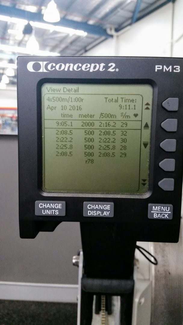 - 500m, skipping for 40 seconds, 500m, skipping for 40 seconds, 500m, skipping for 40 seconds