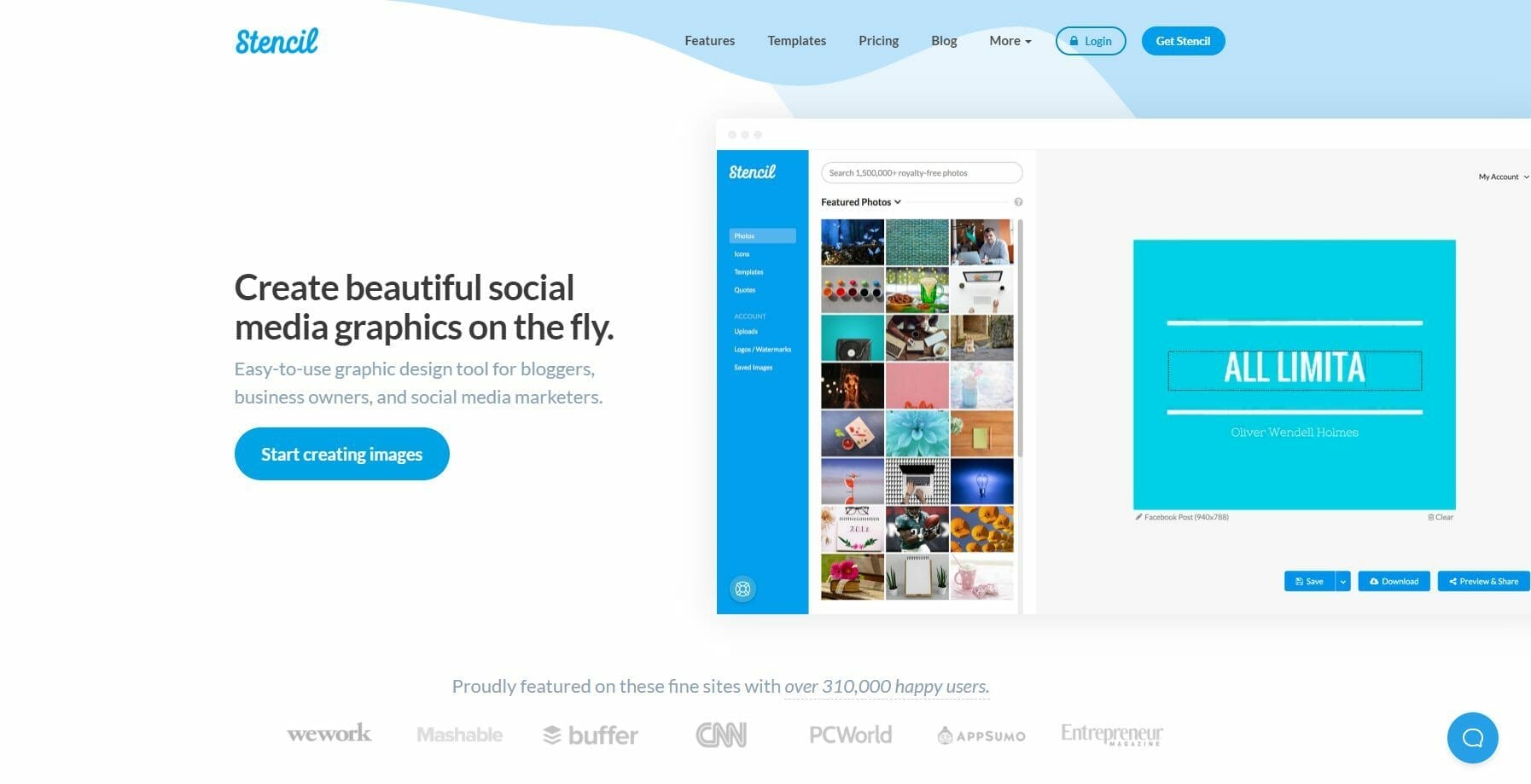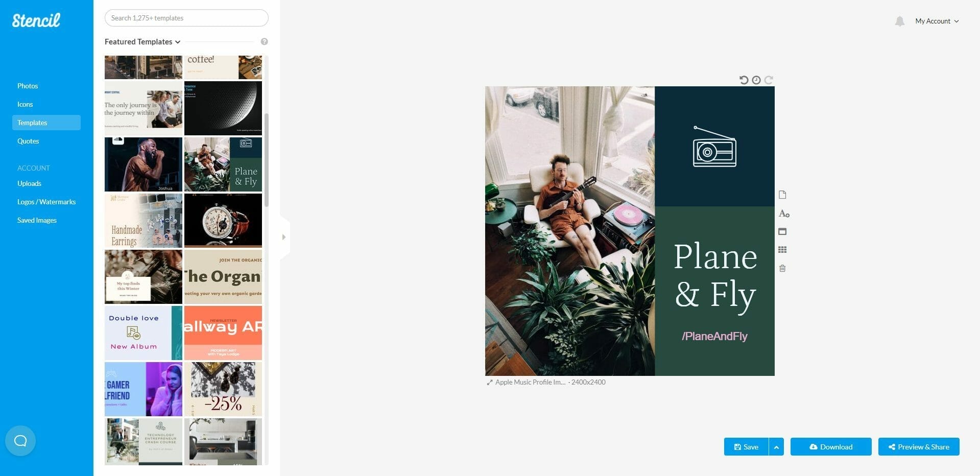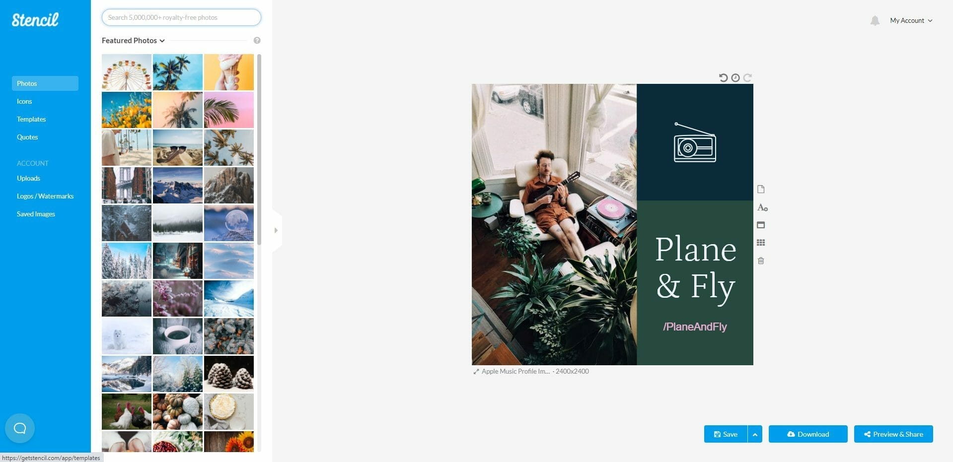 There are also thousands of photos and icons included in GetStencil and there is an option to upload your own photos or fonts. You also have the option to add logos and branding by using a simple switch button.