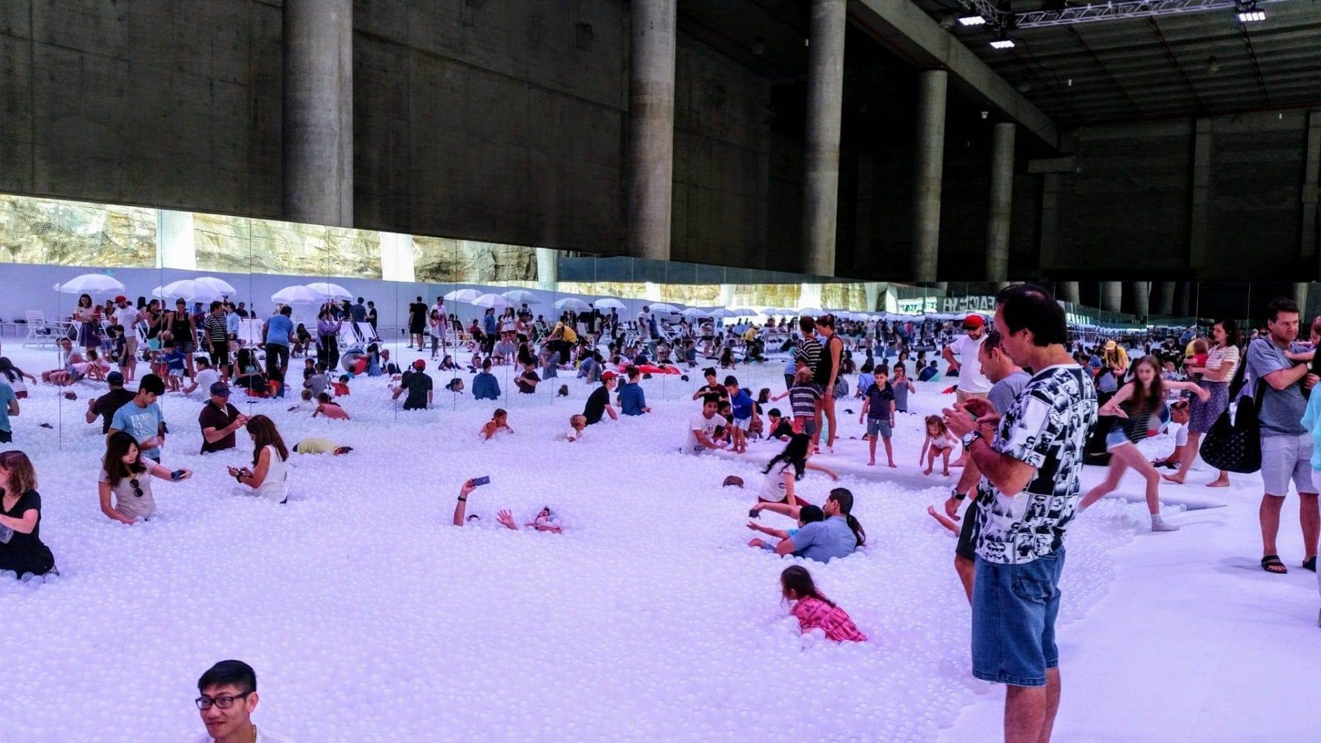 We went to the beach today. Well, it wasn’t your usual beach with sand, water and rocks. It was a large pit area with lots of white balls. It was called “THE BEACH” and it was held in Barangaroo Cutaway. It was a free event and the wife wanted to go with the kids. We spent about 1 hour at the beach but lining up was quite long. It started at 10 am and there were already people lining up. Here are a few photos: