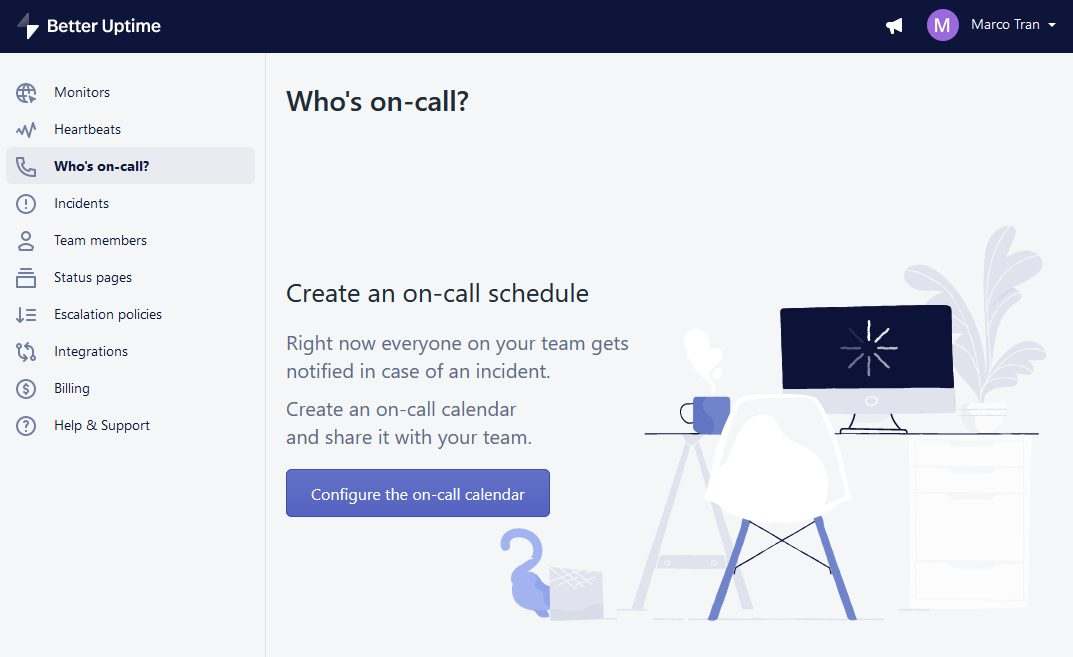 Now I’m going to show you some of the features in Better Uptime and how I’ve set up my account.
