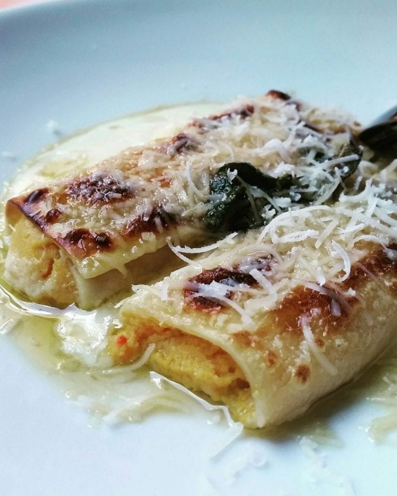 La Rosa – Pane di Casa, Cannelloni (butternut pumpkin, mustard fruit and ricotta, Parmigiano, burnt sage butter) – was really nice and Margherita pizza.