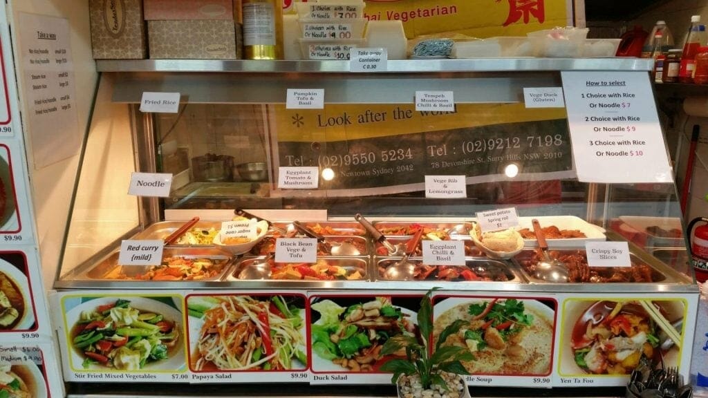 Vegan/Vegetarian Blossom Lotus – Rice with 3 dishes (Black Bean Vege Tofu, Eggplant Chilli and Basil, Crispy Soy Slices) which only cost $10